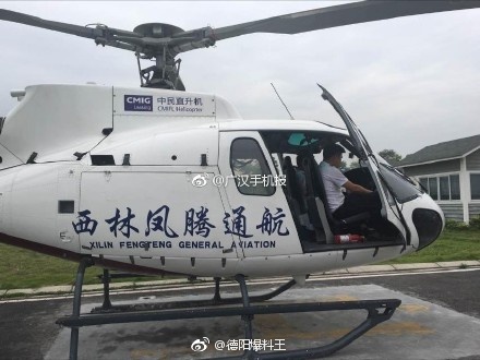 6月24日 ,德阳及广汉市向导搭乘西林凤腾直升机为茂县受灾群众送去药品等救灾物资 。